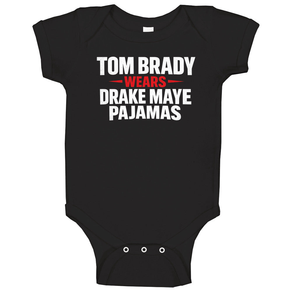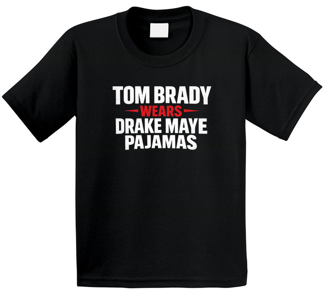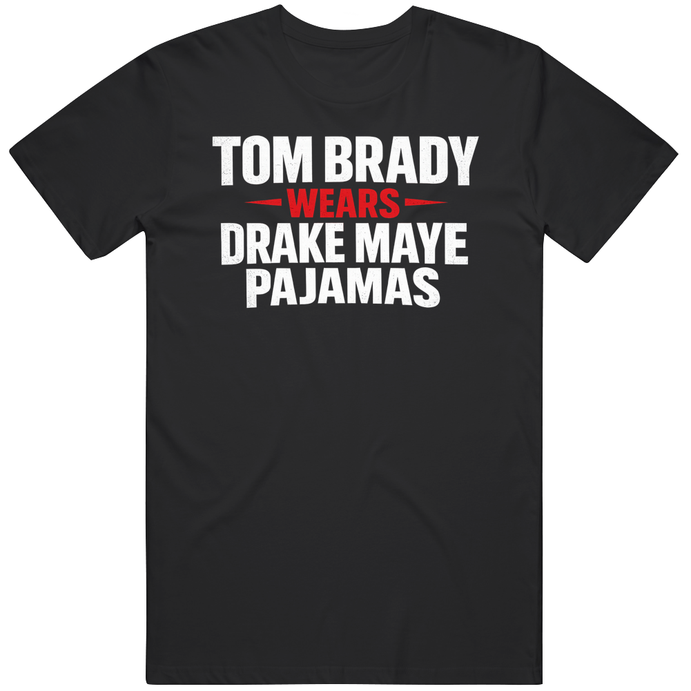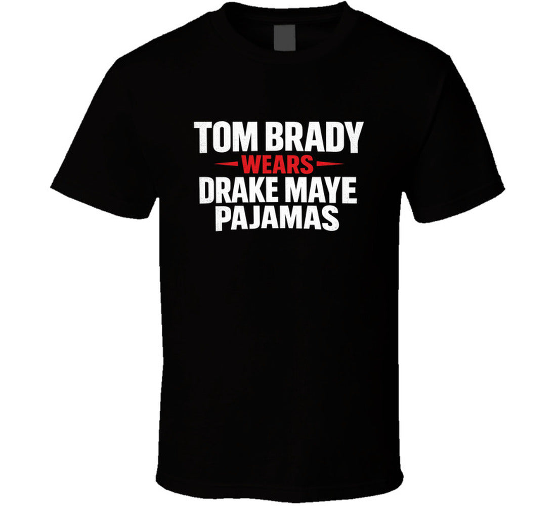 Tom Brady Wears Drake Maye Pajamas Football Fan Great Gift Idea T Shirt is available on a Black 100% Cotton Tshirt. The Tom Brady Wears Drake Maye Pajamas Football Fan Great Gift Idea T Shirt is available in all sizes. Please select your desired shirt style and size from the drop down above.