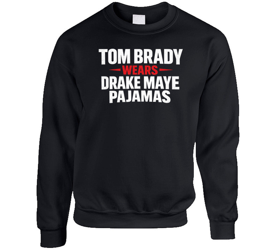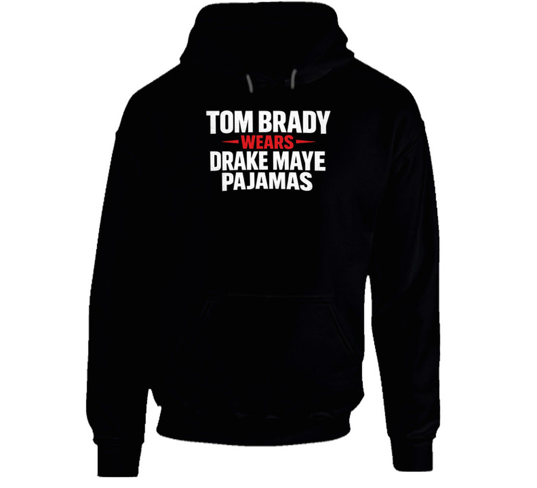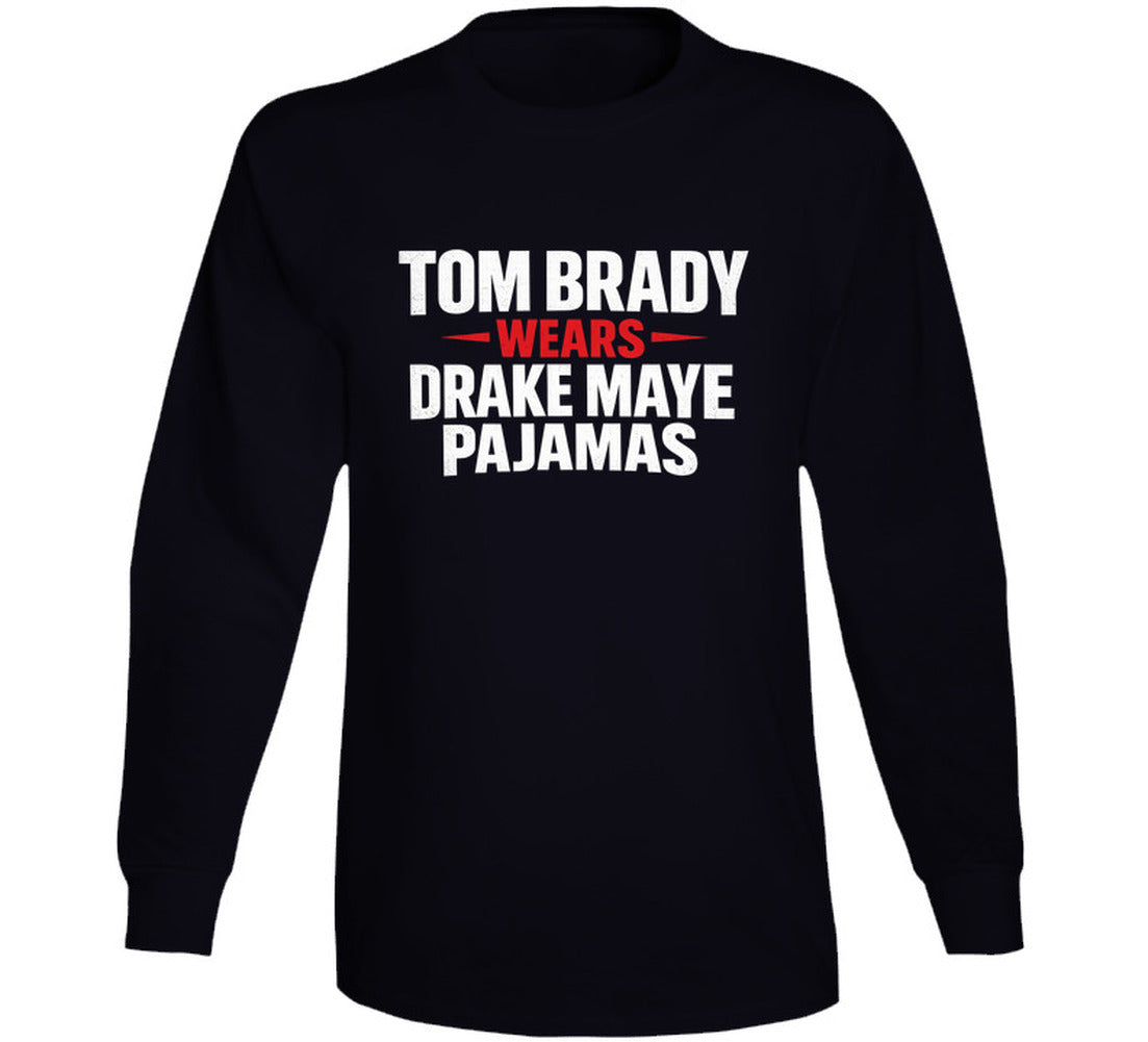 Tom Brady Wears Drake Maye Pajamas Football Fan Great Gift Idea T Shirt is available on a Black 100% Cotton Tshirt. The Tom Brady Wears Drake Maye Pajamas Football Fan Great Gift Idea T Shirt is available in all sizes. Please select your desired shirt style and size from the drop down above.